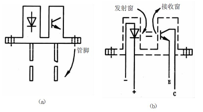 圖1 示出透射、隔離式光電開關(guān)的外形及內(nèi)部構(gòu)造。光電開關(guān)的用途極廣,可構(gòu)成液位、轉(zhuǎn)速、流量傳感器,還適用于自動售貨機(jī)、保安裝置、通信設(shè)備中。