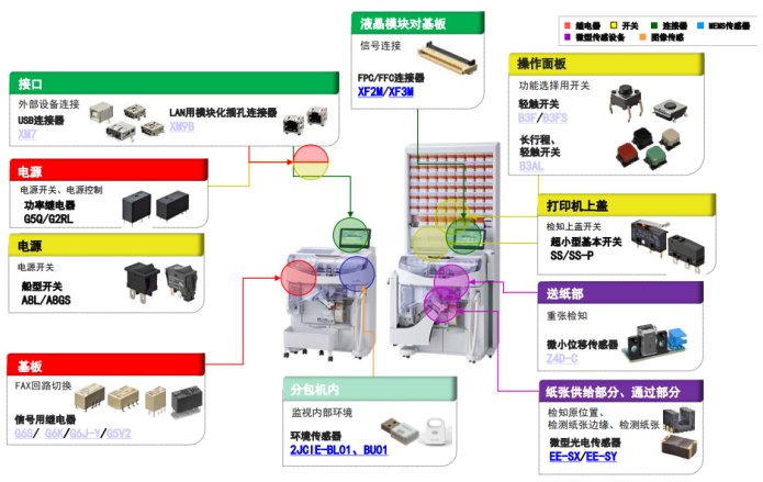 b、紙張供給部分、通過部分:檢知原位置、檢測紙張邊緣、檢測紙張、原點(diǎn)界限檢測:微型光電傳感器:EE-SX\EE-SY