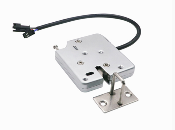 智能快遞柜電控鎖,有12V與24V兩種,體積小,重量輕,不銹鋼材質,外觀美觀結實,3顆M4螺釘固定孔。4條出線,2條為線圈吸合通斷線,另外兩條為狀態信號線。