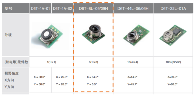 歐姆龍非接觸溫度傳感器D6T-8L-09以其紅外測(cè)檢測(cè),I2C數(shù)字輸出,抗干擾性強(qiáng)三大優(yōu)勢(shì)為您的產(chǎn)品增加人體感應(yīng)功能,讓您的產(chǎn)品穩(wěn)定可靠,獨(dú)具特色。此傳感器像素為1x8,檢測(cè)區(qū)域呈長(zhǎng)條形,橫向視場(chǎng)角54.5°,縱向視場(chǎng)角 5.5°,可根據(jù)產(chǎn)品的實(shí)際應(yīng)用進(jìn)行安裝角度調(diào)整。