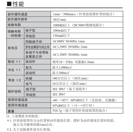 社內較小尺寸、可進行可靠開關的長行程型開關 主體部分尺寸為前代產品的78%,有利于設備的小型化。 沒有擺桿也同樣使用方便的長行程規格 (OT參考值 :1.4mm) 不含對環境有害的物質,導線類型也實現了無鉛化。