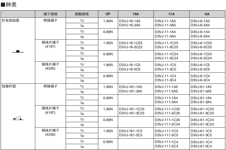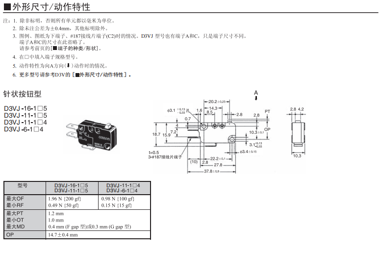 D3VJ小型微動歐姆龍開關(guān)