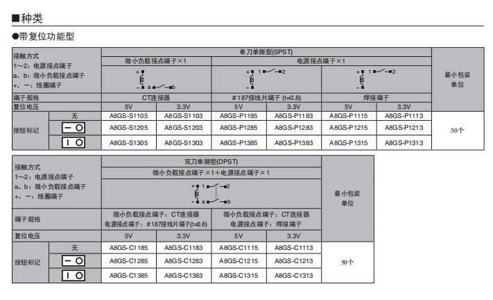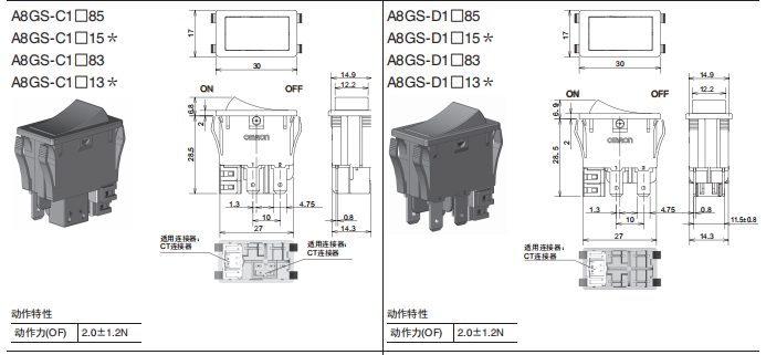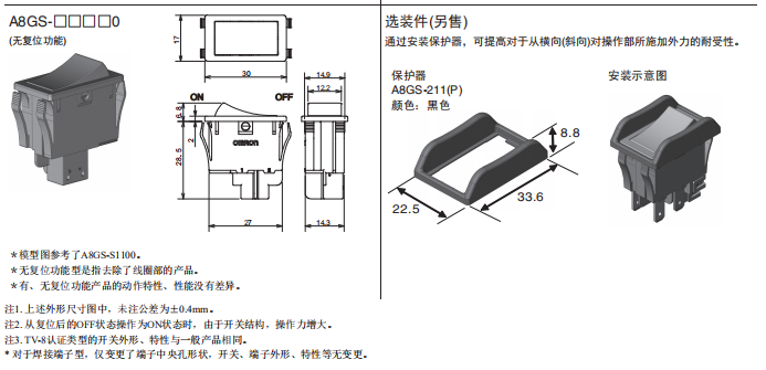 A8GS 遠程復位 船形開關 帶復位功能船形開關 利用基于外部信號的 “復位功能”關閉電源開關,設備的待機功率為零。 適用于浪涌較大的負載的電源ON/OFF。適用于TV-8(浪涌特性117A)。 備有適用于微小負載領域的接點構造種類。 備有可同時ON/OFF微小負載領域、高負載領域的2極規格種類。 接點間隙大于3mm。 取得UL、cUL標準認證,并符合EN標準。